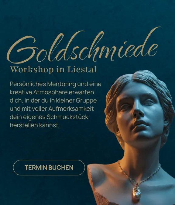 Ich bin Julia, Goldschmiedin in Liestal. Als Kind habe ich stundenlang gefundene Drähte gebogen, ohne zu ahnen, dass dies eines Tages mein Beruf wird. Heute arbeite ich in einer echten Werkstatt – nicht mehr mit den heimlich ausgeliehenen Zangen meines Vaters, sondern mit meinen vielen eigenen Werkzeugen.